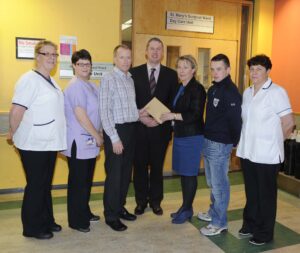 Pictured (L-R) Nurse Laura Furlong; Ann Kenny, Care Assistant; Jim Sutton; Niall Reck, Friends of Wexford General Hospital; Lily Byrnes, General Manager Wexford General Hospital; Gary Sutton; Nurse Eileen O’Sullivan
